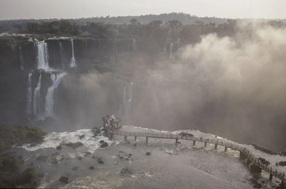 But the town was not the objective of our seven-and-a-half hour drive from Asuncion (at an average speed of just 55.6 km/h) but rather the famous Iguazu Falls which lie just 40kms SE of the city right along the border between Brazil and Argentina. We stayed overnight at the Hotel Ilha de Capri in Foz, Brazil, which is now the Iguassu Flats Hotel and were able to watch the sun setting behind the falls.