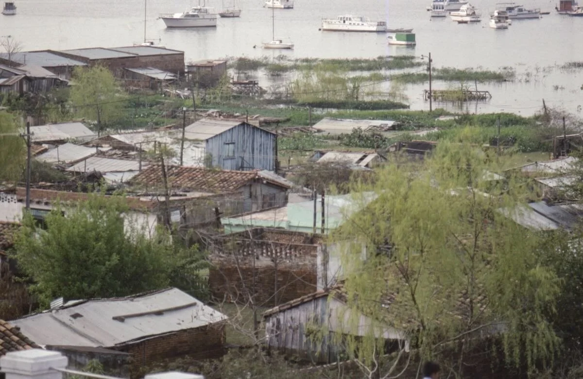 Oscar took me to the large Chacarita shantytown which lies just behind the Congreso Nacional (parliament). Parts of it were underwater because the river Paraguay was flooded, a frequent occurrence still today. According to Oscar the only people living in temporary cardboard houses were those whose homes were flooded. The others had baked-mud houses, some of which were painted, lined along streets which were either paved with slippery, black, shiny cobbles or left unpaved. A few areas were full of rubbish but there were no bad odours. Most of the shod, clean, well-dressed inhabitants were outdoors, chatting, and didn't seem to mind us, looking us straight in the eye and smiling if we smiled first.