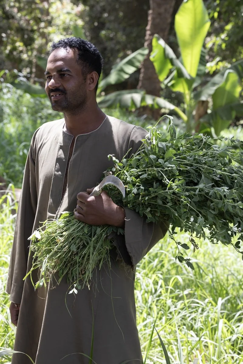 And fourth, when I then sat on the deck of our dahabiya (a 19th century, motor-less, two-masted sailing boat which is towed when there’s no wind) and watched life on the river banks glide past, I realised that, apart from the satellite dishes atop many of the mud-brick homes, Egyptian rural life today has changed little in the intervening 40 centuries!! Riding his donkey home at the end of the day, the peasant dressed in his galabeya (aka jellabiya or jalabiya), the ankle-length, loose-fitting, long-sleeved, collarless, traditional garment worn by most men and boys in the villages and small towns along the Nile, would have been a familiar figure to pharaonic artists.