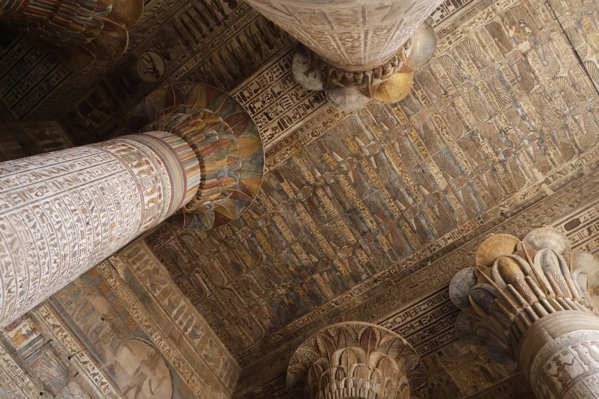 The one I think I preferred, which we did have to ourselves – apart from the archaeologists on scaffolding doing restoration work – was Esna Temple near Luxor. The temple is bite-sized, its architecture easy to comprehend and the newly restored colours on the dozens of dizzyingly high columns are dazzling.